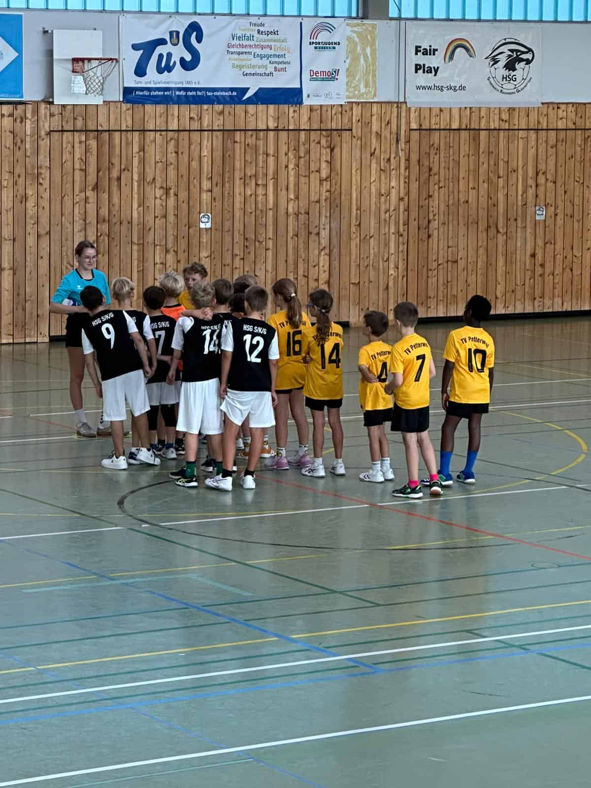 Im ersten Heimspiel der E-Jugend stellten sich 8 Spieler dem TV Petterweil entgegen. Mit großem Einsatz erkämpfte sich die HSGler immer wieder Bälle und kamen so zu Toren, die sie auf möglichst viele Torschützen verteilen wollten. Das gelang auch gut, so sehr, dass 7 von 8 Spielern zu Toren kamen. Der Gast nutzt aber auch konsequent die Lücken, konnte diese Tore aber nicht auf so vielen Spielern verteilen. Zwar erzielte Petterweil beim 14:16 2 Tore mehr, aber die 2 Torschützen mehr der HSG führten zum knappen 98:96-Heimsieg.