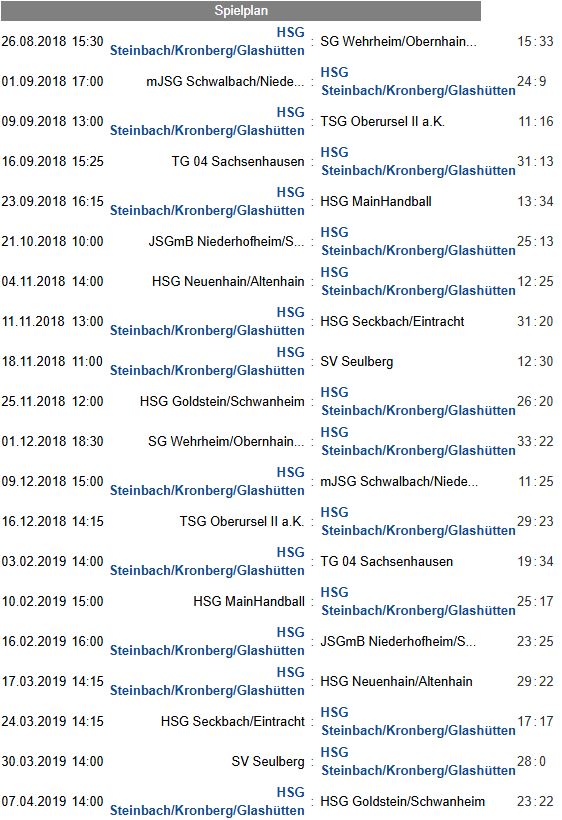Das ist die Tabelle und die Spielergebnisse: